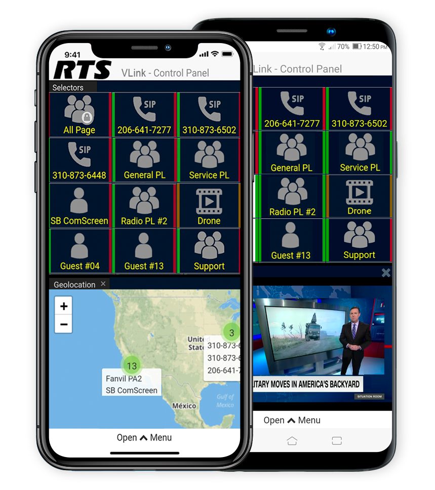 Es una solución de comunicaciones de múltiples canales / acceso múltiple de software IP que se conecta de manera inteligente a los intercomunicadores RTS, creando la fusión óptima de capacidades de hardware y software. VLink es altamente escalable a miles de usuarios, admite prácticamente un número ilimitado de punto a punto y PL, cuenta con integración LDAP, trampas SNMP, cifrado AES y grabación SIPREC.
